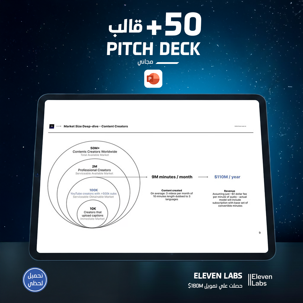 • 50+ قالب Pitch Deck جاهز للاستخدام والتعديل